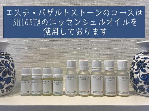• バザルトストーンコースには、SHIGETAのエッセンシャルオイルを使用しております。